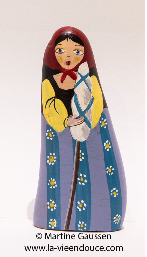Le santon peinte sur galet la Fileuse et son présent – la Vie en Douce de Martine Gaussen