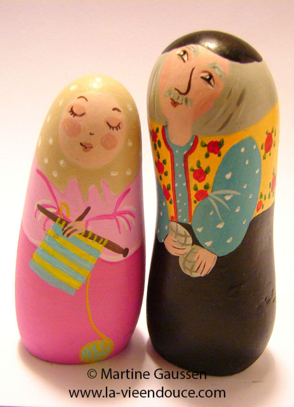Je m’occupe lors de la commande de choisir les santons et de former les couples avec beaucoup de soin. Chaque galet est unique! Je tire partie de la forme naturelle du galet, retaillé pour avoir une assise stable.