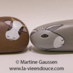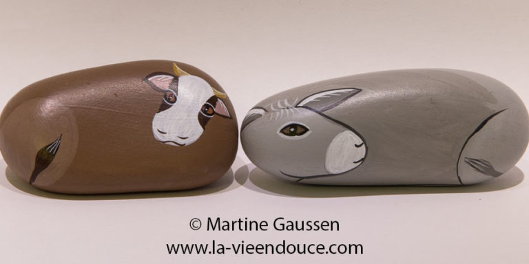 L’âne est un des deux santons animaux indispensables qui figurent dans la nativité, avec le santon galet le bœuf. Avec Joseph, Marie, Jésus et l’ange, ce sont les santons galets principaux de la nativité. Je choisis l’âne légèrement plus petit que le bœuf , par souci de réalisme. Leurs têtes sont dans des sens opposés pour que l’on puisse les disposer dans l’étable tête à gauche et tête à droite afin qu’elles soient bien visibles.