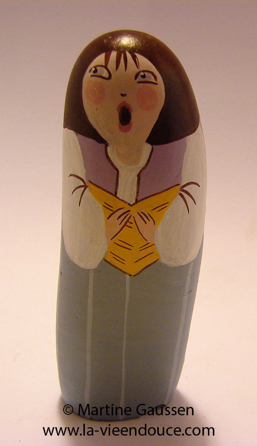 Santon original le chanteur dans la crèche peinte sur galets de la Vie en Douce