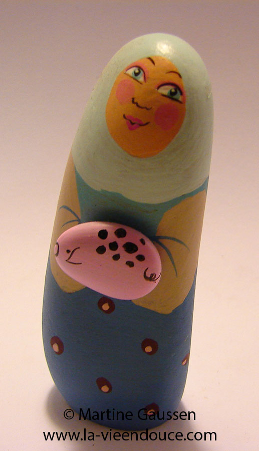 Le santon la Fermière au cochon et son petit cochon - la Vie en Douce de Martine Gaussen