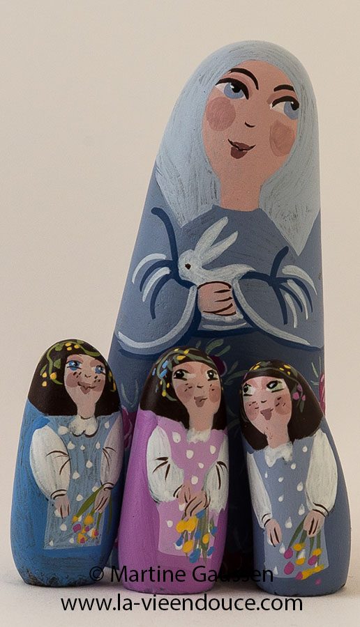 Le groupe de santons la Fermière au lapin et les Petites filles – la Vie en Douce de Martine Gaussen