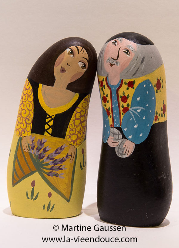 Lors de la commande j’ai à cœur de choisir les santons et de former les couples avec le plus de soin possible, comme je le ferais pour moi même.